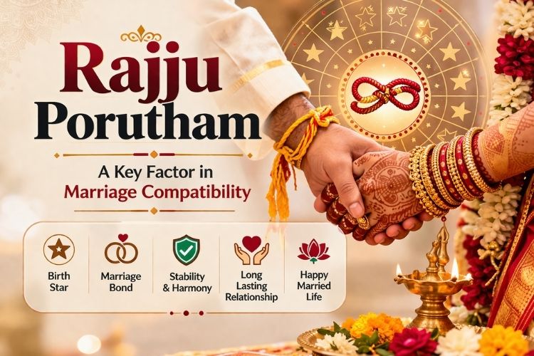Rajju Porutham is one of the important matching factors in Tamil marriage astrology. This guide explains its meaning in simple English, why it is checked before marriage, and why it is useful for understanding stability in married life.